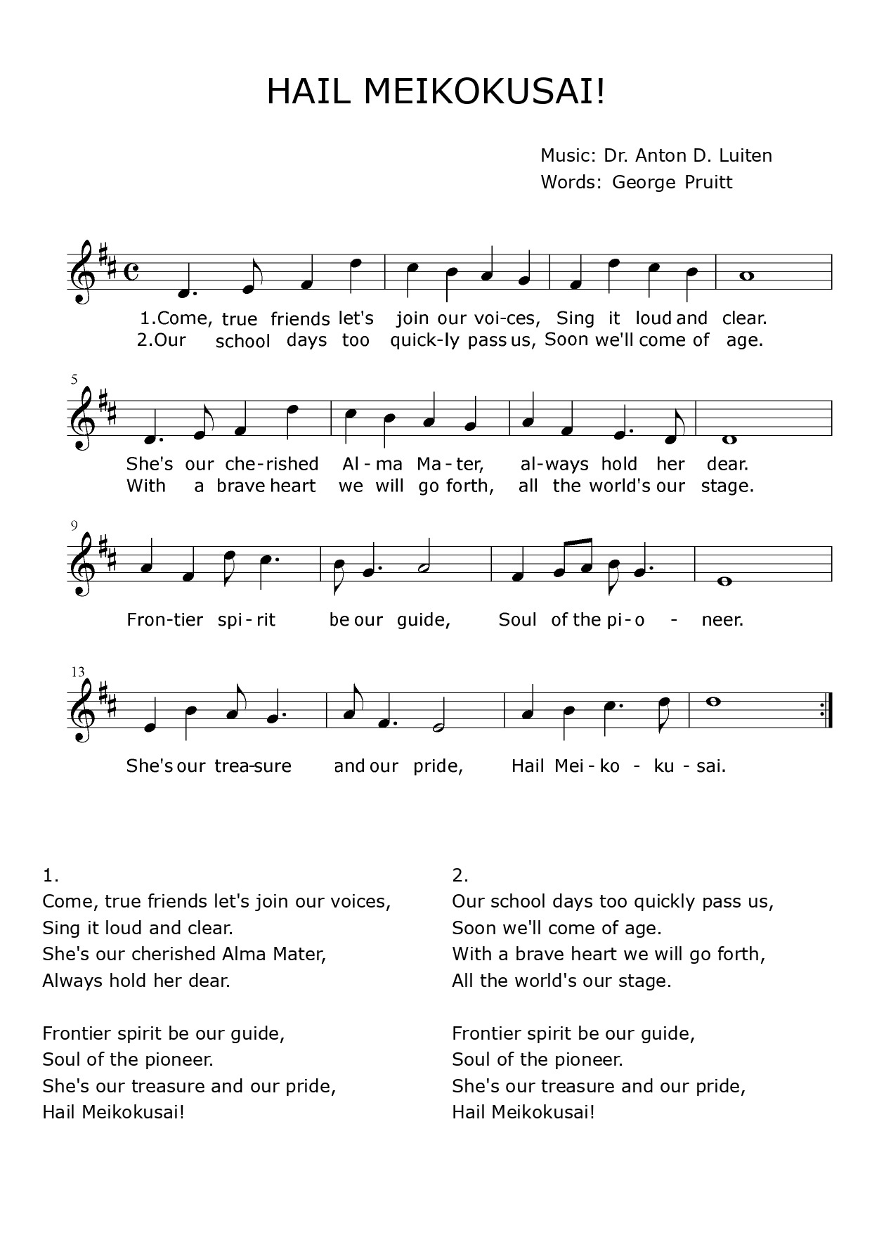 - Come, true friends let's join our voices, Sing It loud and clear.